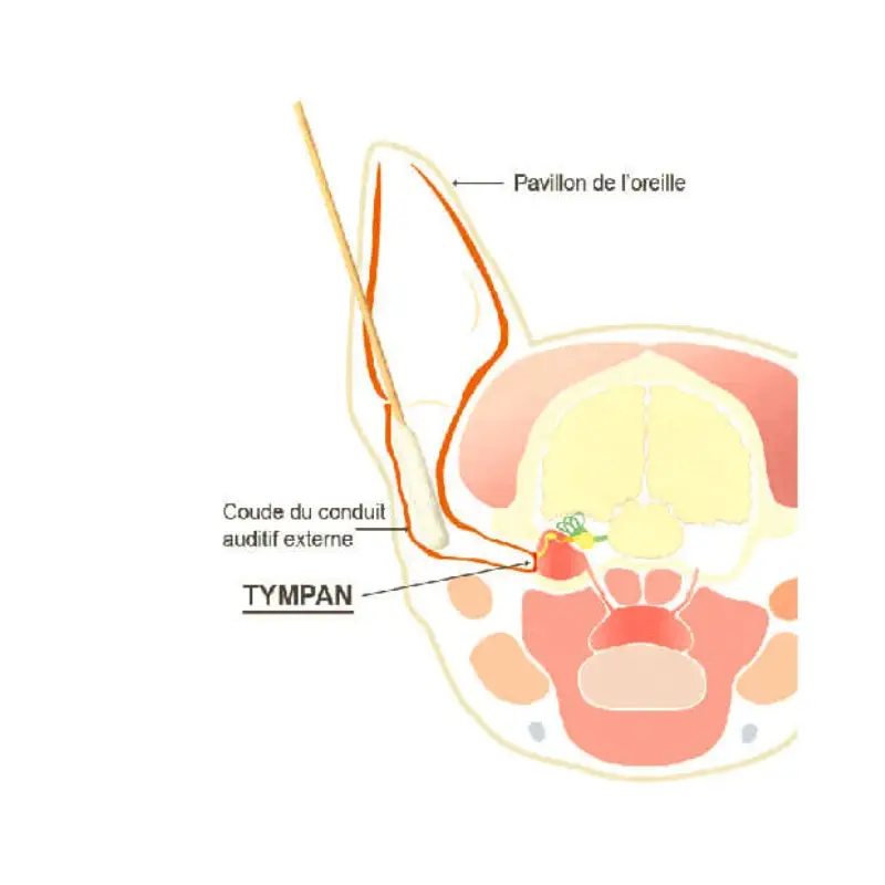 Le conduit auditif du chien présente une anatomie coudée qui peut rendre un nettoyage interne délicat. La forme ergonomique et les dimensions des BambooStick® empêchent le bâtonnet de dépasser le “coude” du conduit, minimisant ainsi tout risque d’atteindre le tympan ou de causer une gêne pendant le soin.
