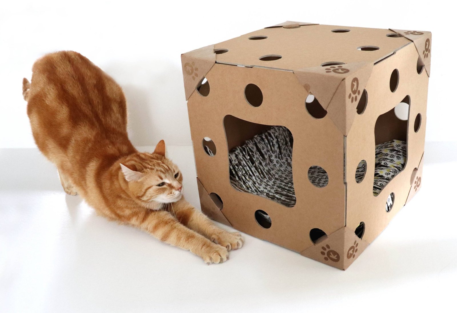 Glissez une petite friandise ou un jouet au milieu du coussin pour éveiller la curiosité de votre chat et créer un mini terrain de fouille.
