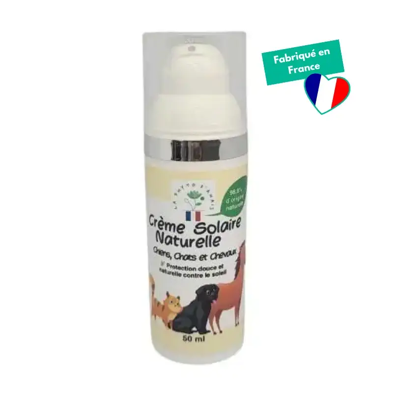 La crème solaire naturelle La Phyto d’Anaïs est spécialement conçue pour protéger la peau sensible des chiens, chats et chevaux face aux agressions du soleil. Contrairement aux produits humains, cette formule est adaptée aux animaux et agit comme une barrière physique contre les rayons UV, limitant les risques de coups de soleil et d’irritations.