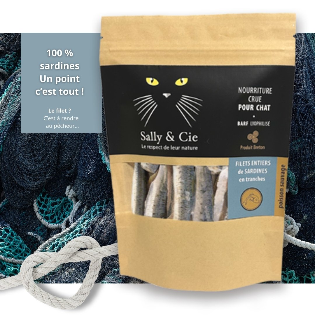 Les sardines sont pêchées localement, entre Douarnenez et Saint‑Guénolé, pour Sally & Cie. Grâce à ce choix d’origine, vous offrez à votre chat un ingrédient de qualité supérieure, riche en oméga‑3 naturels, pour une nutrition complète et équilibrée.