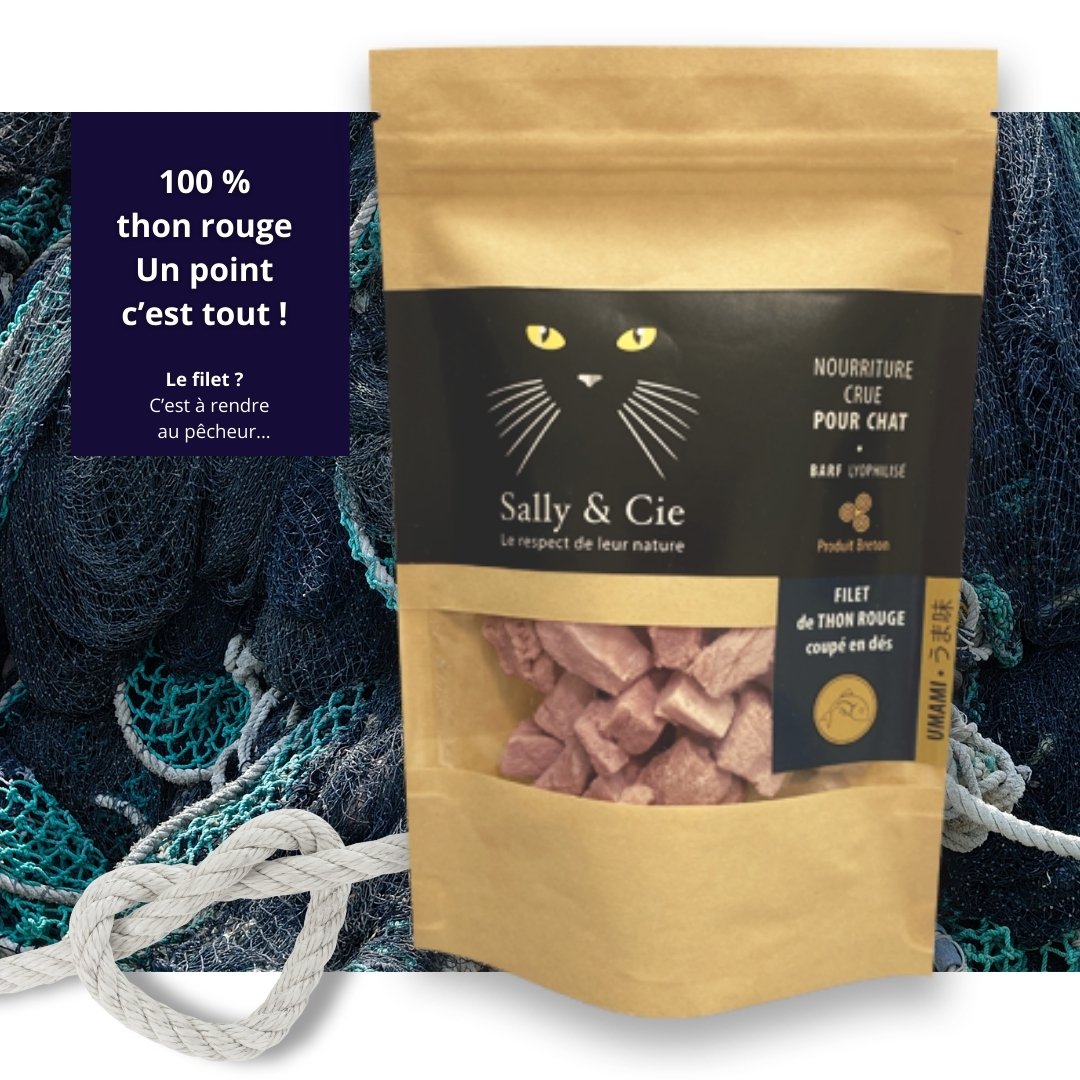 Dés de thon rouge BARF lyophilisés – Protéine premium pour chat