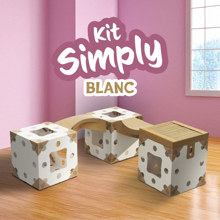 Le kit Simply blanc est idéal pour découvrir l’univers Kléo en douceur. Avec 3 cubes blancs, 1 griffoir et 2 arches, il offre un espace de jeu et de repos simple mais efficace pour votre chat.