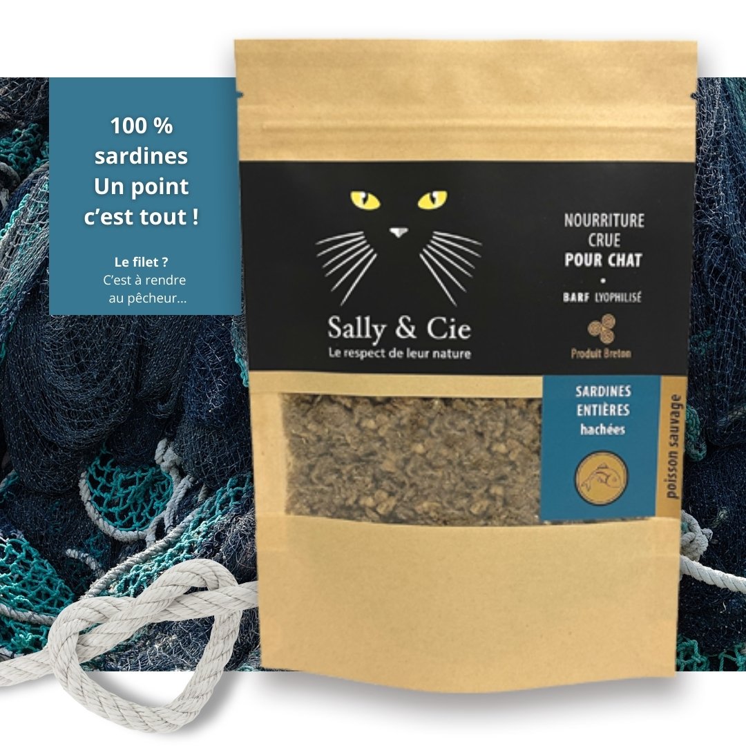 Cette formule se compose à 100 % de filets de sardines, sans céréales, sans additifs ni conservateurs. De plus, les sardines sont pêchées localement entre Douarnenez et Saint-Guénolé, garantissant fraîcheur, traçabilité et qualité premium. Par conséquent, ces croquettes respectent le régime carnivore naturel du chat et conviennent parfaitement aux chats stérilisés ou sensibles.