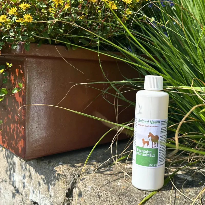 Le shampoing hydratant et insectifuge Animal Neem pour chien et cheval nettoie efficacement le pelage tout en respectant la peau grâce à une formule douce à base de tensioactifs issus de matières premières renouvelables et naturelles. Il élimine les impuretés sans agresser, tout en prenant soin des poils et de l’épiderme.