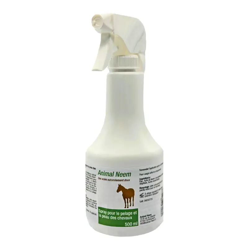 Ce spray insectifuge naturel pour cheval est également recommandé pour les chevaux sensibles ou sujets aux allergies. L’huile de neem aide à apaiser les irritations cutanées et à limiter les frottements excessifs de la queue ou du pelage, souvent causés par l’inconfort lié aux insectes.
