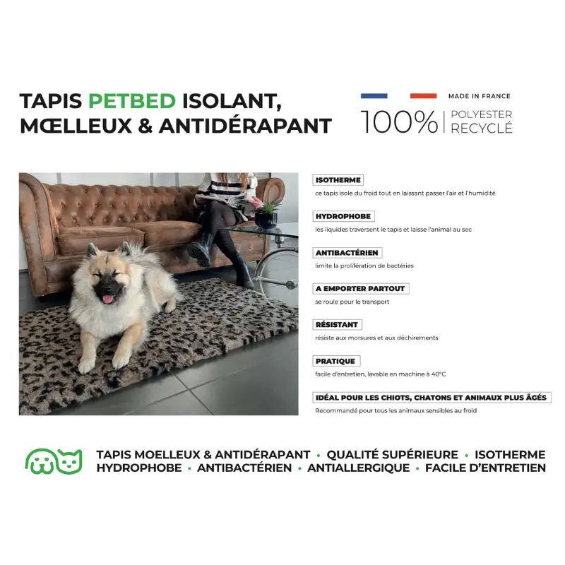 Le tapis PetBed possède une conception isotherme et hydrophobe qui offre plusieurs avantages :